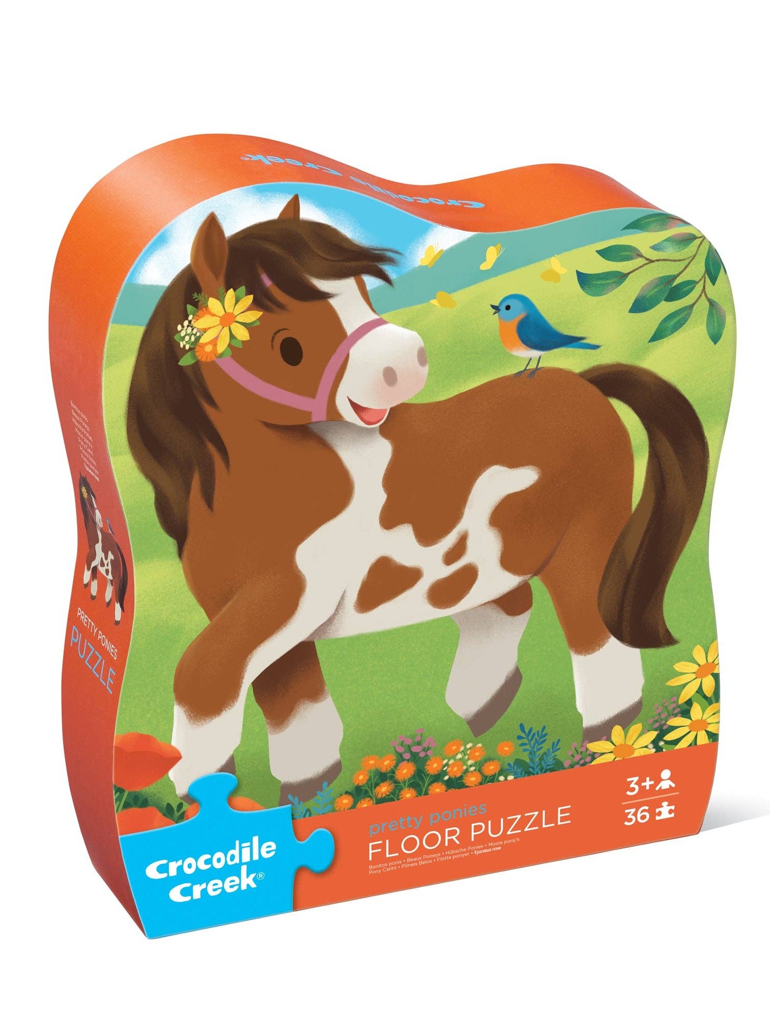 Detailed, colorful, and whimsically illustrated, these best-selling floor puzzles are perfect for all ages. The whimsical Pretty Ponies design will engage imaginations while the fun of the challenge helps encourage problem-solving skills. All Crocodile Creek puzzles are printed with soy-based ink on recycled cardboard. Uniquely shaped storage box is study and will keep all the pieces together when the puzzle is not in use.
