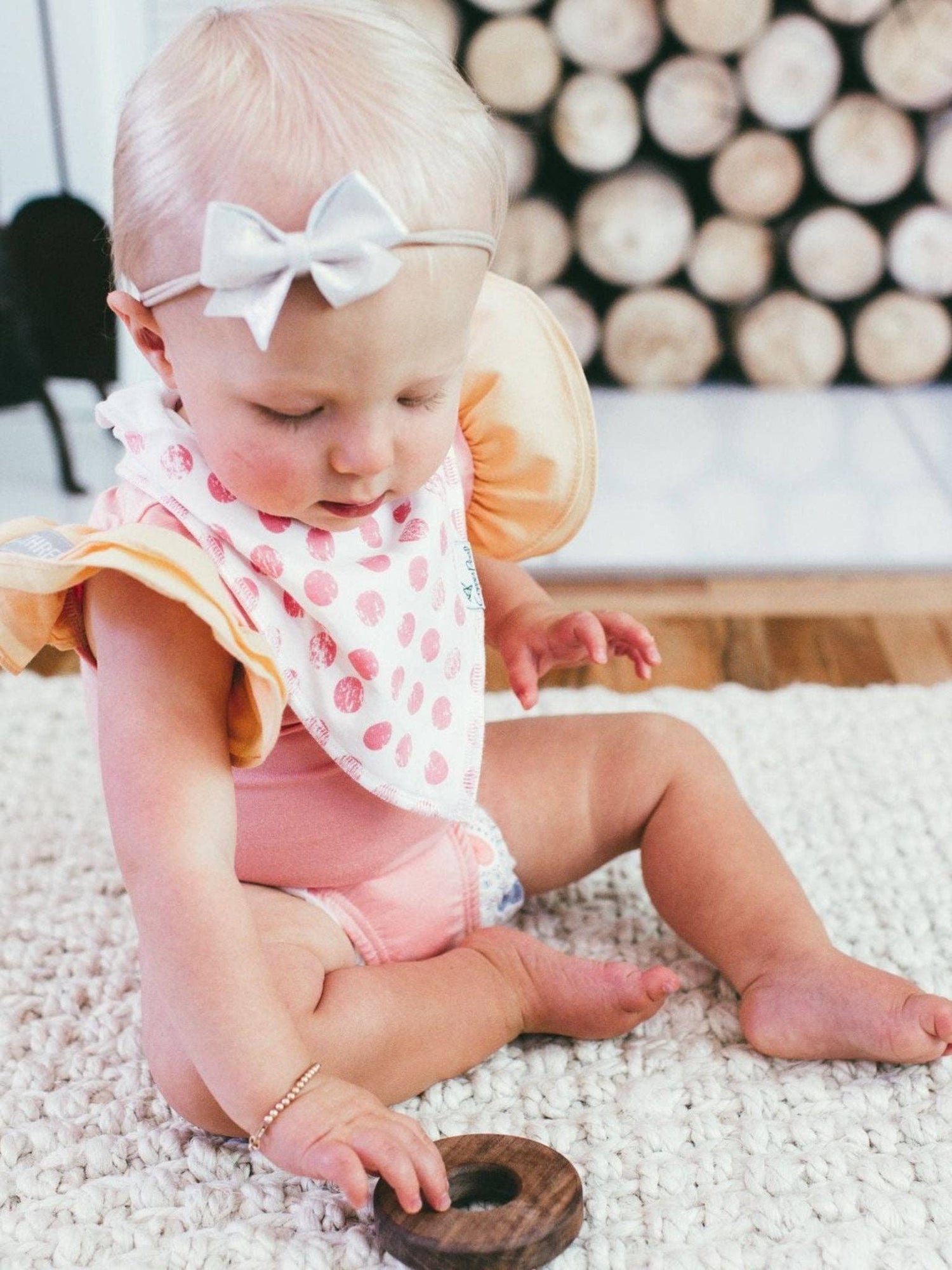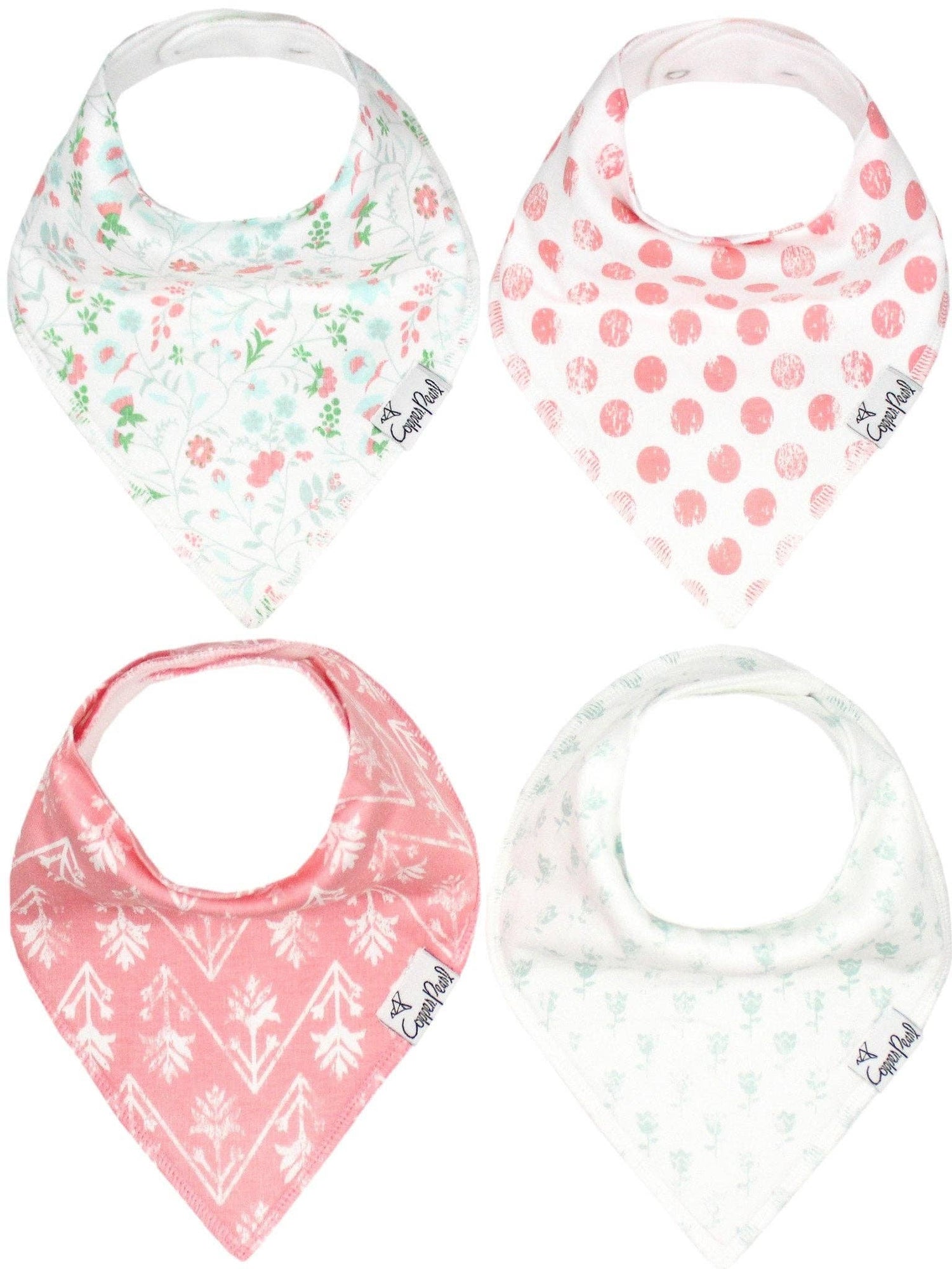 - Absorbent cotton drool bib: These stylish drool bibs are made of 100% absorbent cotton on the front and 100% polyester fleece on the back. The front of the baby bib is a stylish knit fabric and the back is a super soft fleece that keeps your baby completely dry even with the drooliest of babies. Great for teething babies!