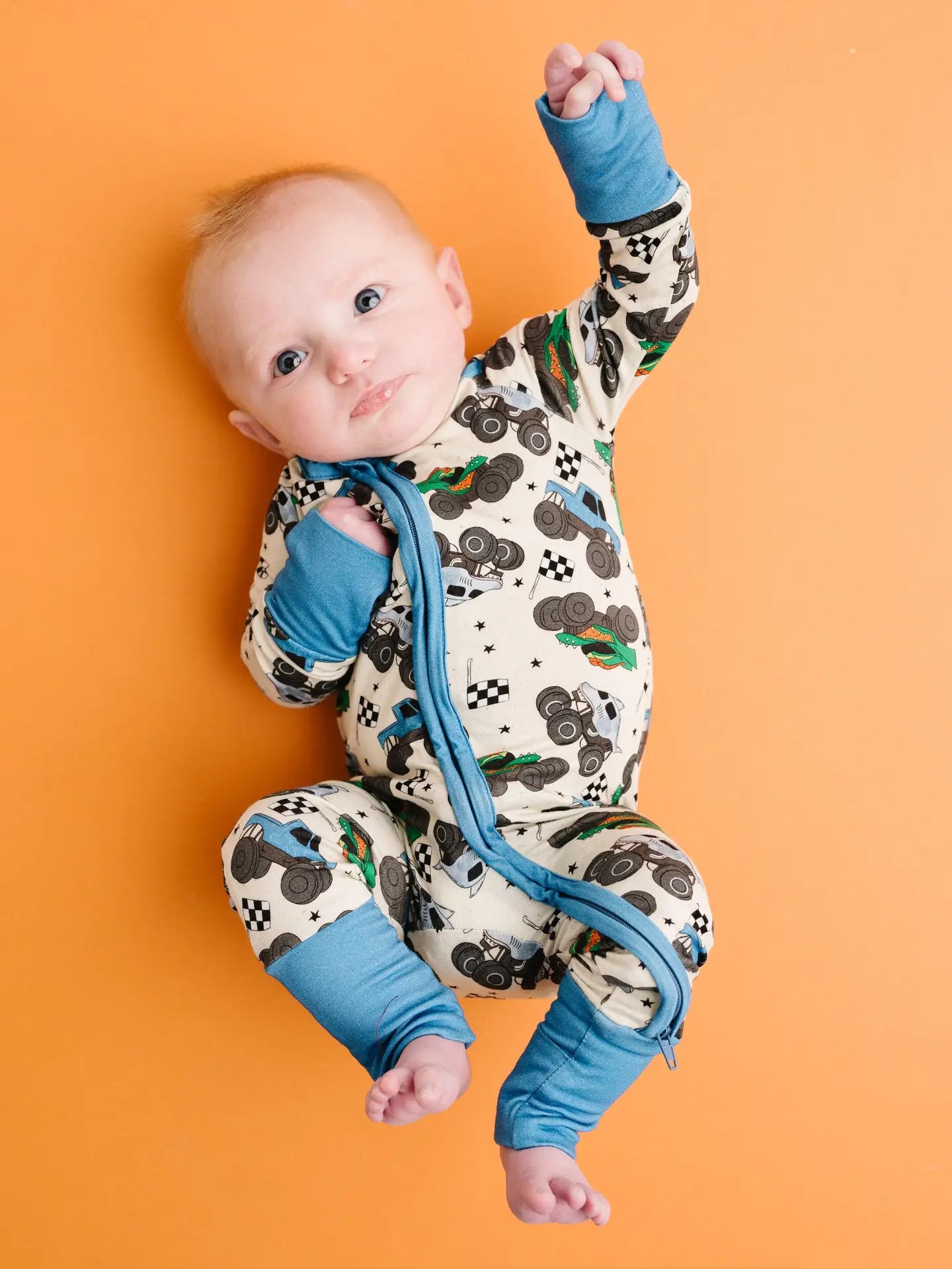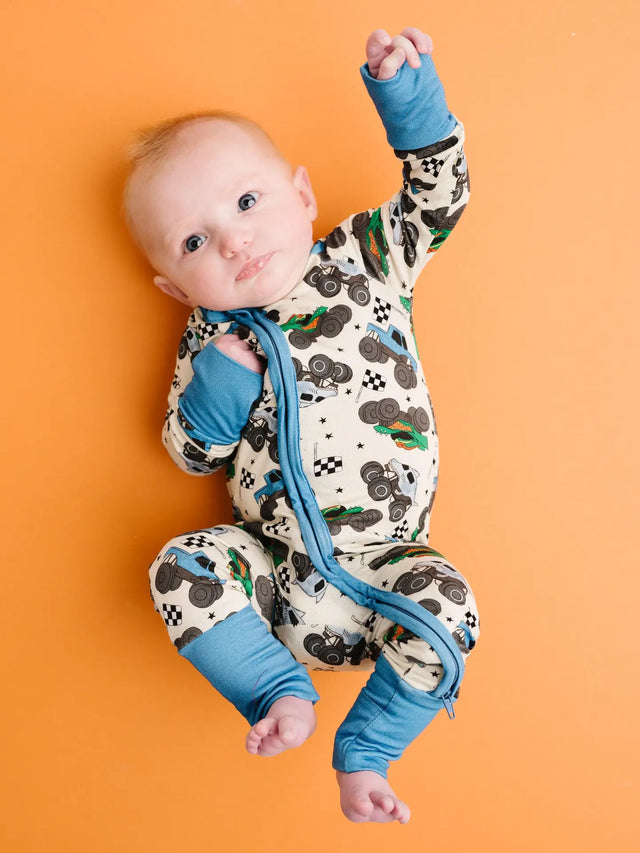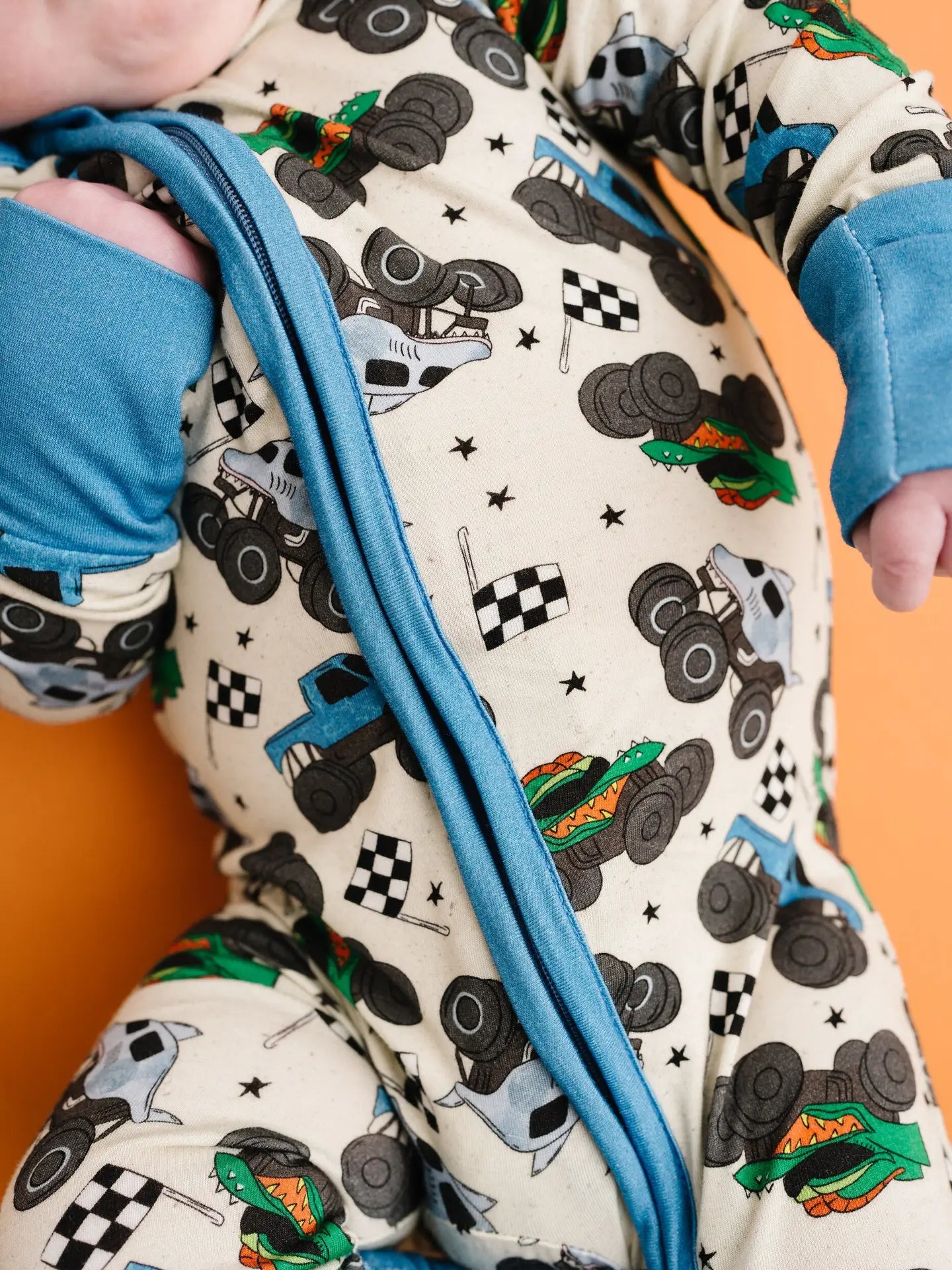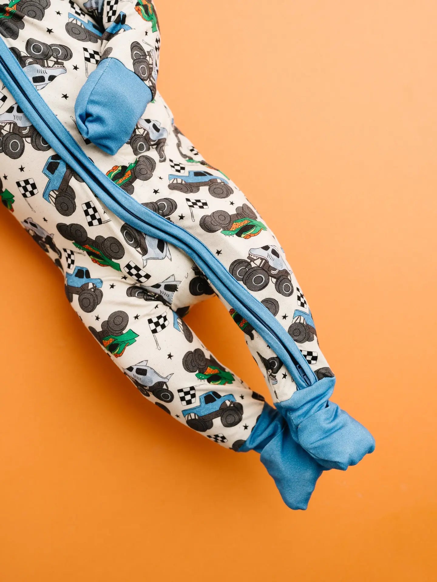 Bamboo Convertible Footie - Monster Trucks - 0-3m is backordered and will ship as soon as it is back in stock.