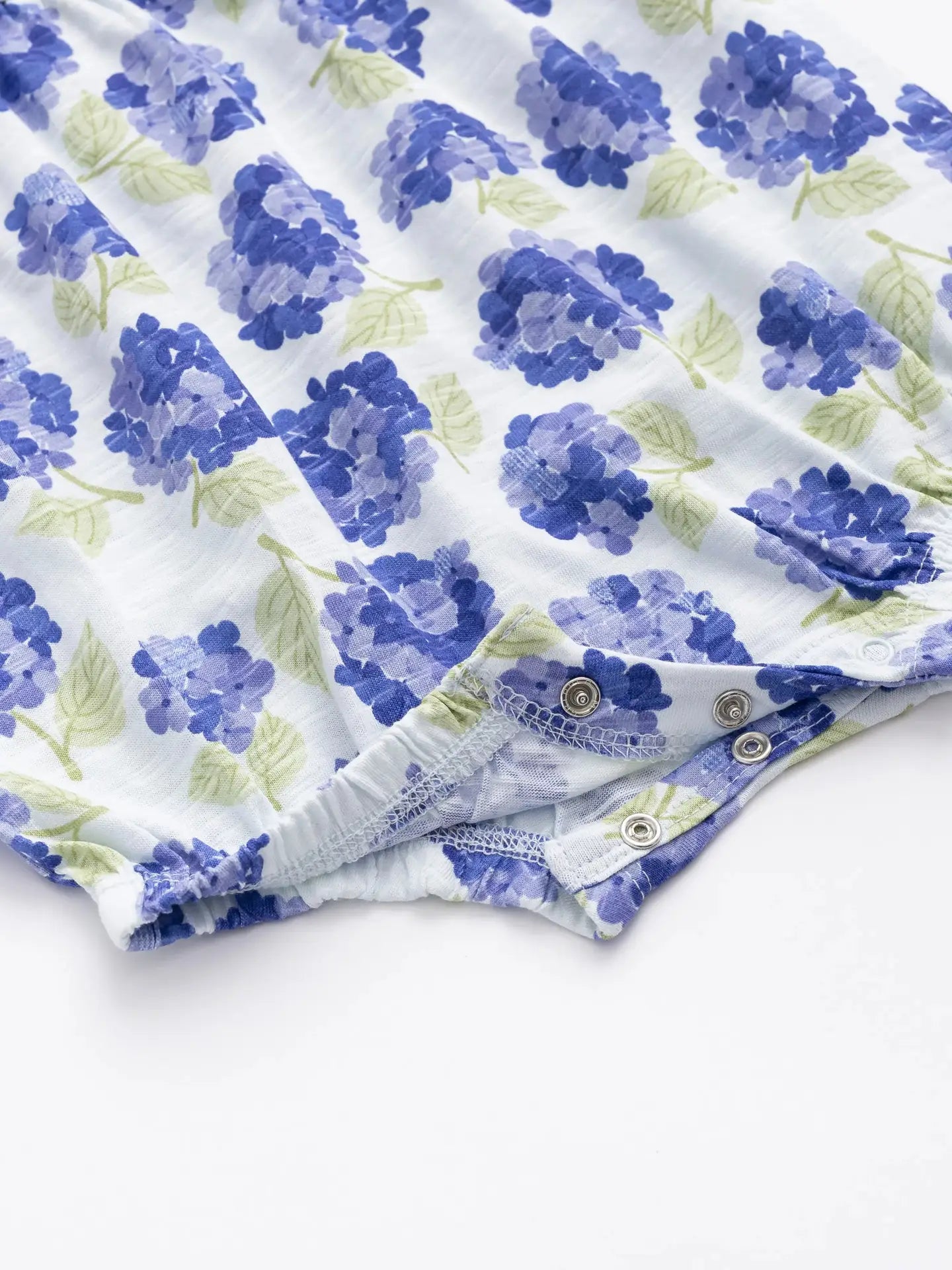 Shorty Bubble Romper - Hydrangea - 0-3m is backordered and will ship as soon as it is back in stock.
