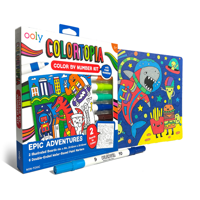 Beginner painters can create their masterpiece in no time with this sweet and smart color by numbers kit. Bring two epic adventures to colorful life by following the number guide and using the included premium paint markers. Watch how an astronaut shark and a French fry alien transform into vibrant characters as the water-based markers smoothly paint onto the board. And once you’re finished, you can display your work on one of the included sturdy stands. From start to finish, this color by numbers set takes care of everything you need to feel like a real artist! This is a wonderful gift for any kid who’s interested in expressing their creativity.