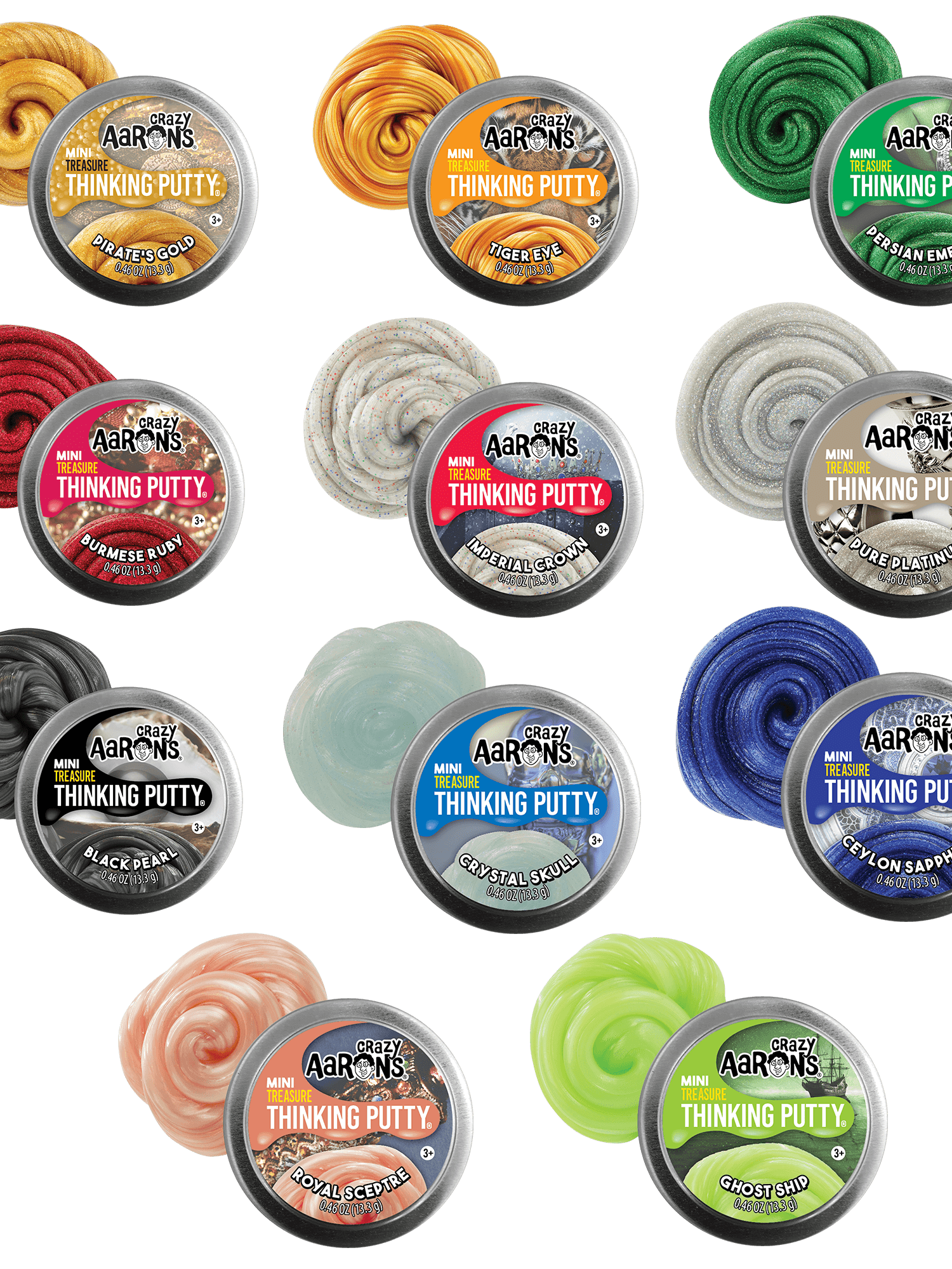 Crazy Aaron's® Treasure Surprise collection has twelve incredible finds just waiting to be discovered! Collect rare, extraordinary, and epic finds and try to capture the legendary Pirate's Gold, which includes a sprinkling of genuine 24K gold, and Lost Diamond, which contains actual diamond dust!