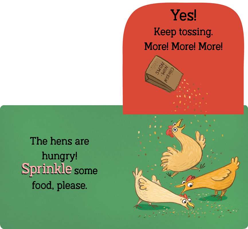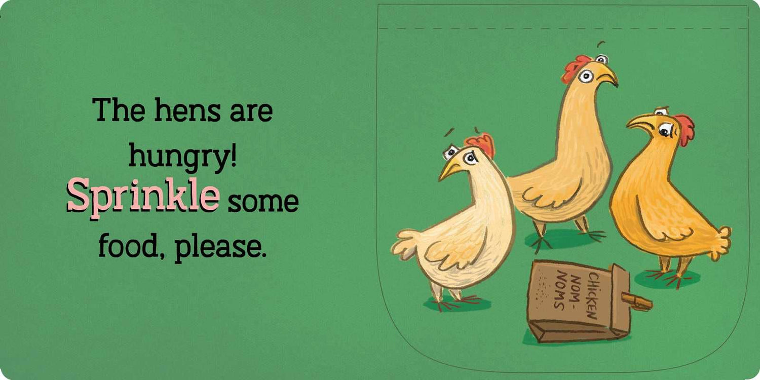 This interactive novelty board book encourages readers to care for animals at the farm by lifting the sturdy flaps on each spread. Feed the hens, brush the pony's mane, and open the gate so the cow can graze in the pasture in this inventive and engaging book that teaches little ones how to be responsible.
