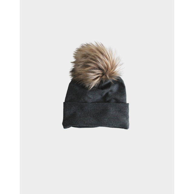Faux Fur Pom Hat - Charcoal FINAL SALE - 6-12m is backordered and will ship as soon as it is back in stock.