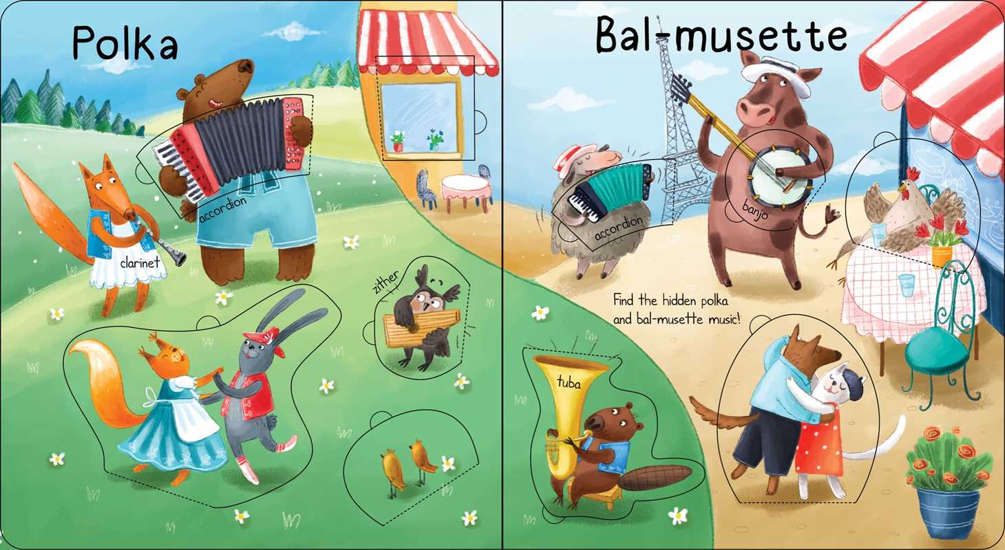Music and sounds are very beneficial for child development. So why not awaken their curiosity from a very young age? This book satisfies children’s curious nature by introducing them to a multitude of interesting facts about instruments and fun sounds hidden behind the flaps. A fun sound book to explore and cherish!
