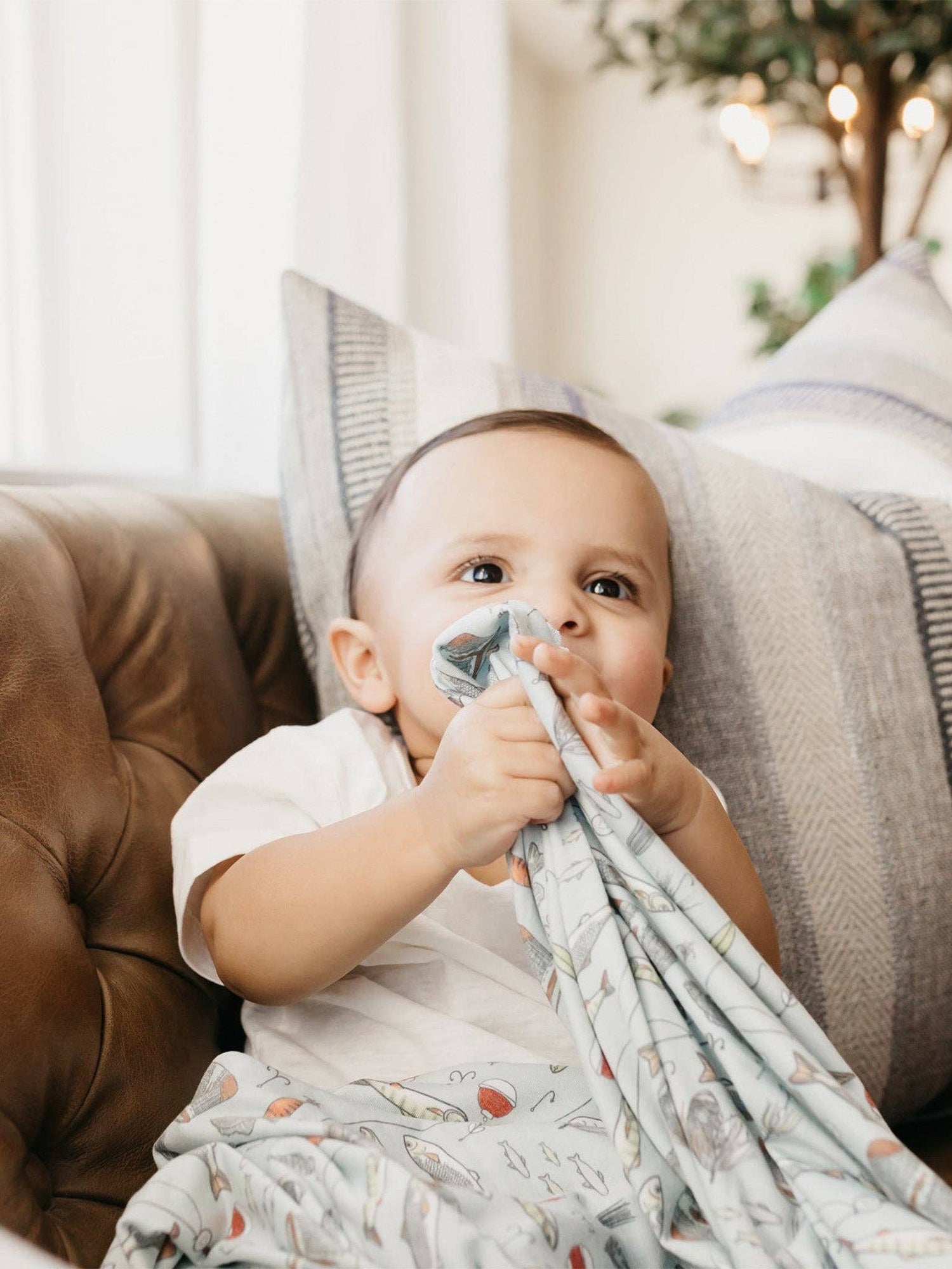 Knit Swaddle Blanket - Trout is backordered and will ship as soon as it is back in stock.