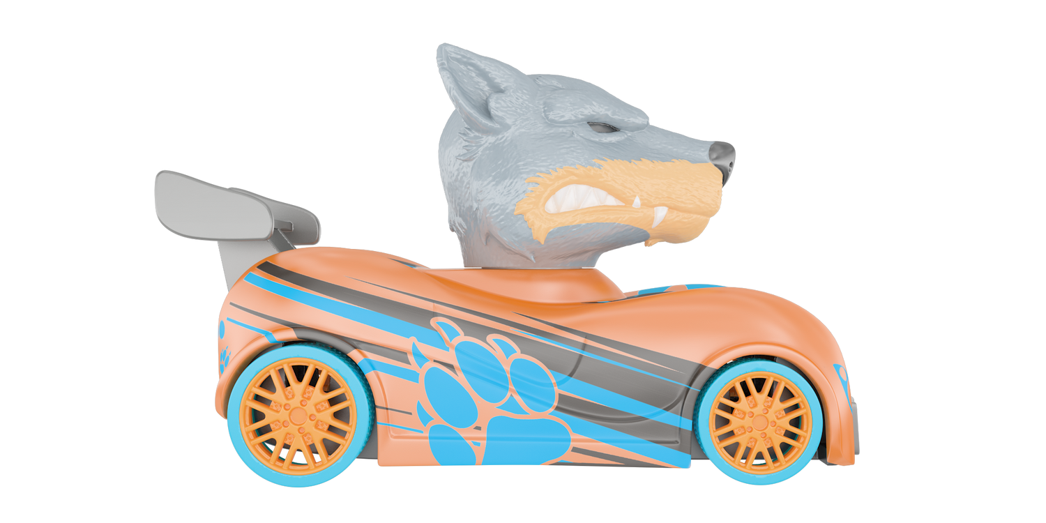 UNLEASH THE BATTLE BEASTS: It’s Snarl the howlin’ wolf vs Fang the saber tooth cat in a no-holds-barred clash; pull back, aim, and smash into your rival; loser’s head pops off 12” away in epic fashion; set of 2 race cars.