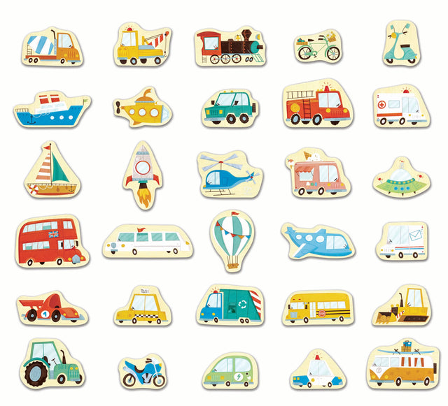 Improve playtime with these fun and educational vehicle magnets that help develop fine motor skills and vocabulary. Encourage children to associate sounds with each type of vehicle, such as 'vroom' for cars and 'zoom' for planes, to enhance their recognition of shapes and patterns.