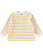 Long-sleeved top in soft cotton terry for the little ones. The top has ribbed trim at the neckline and sleeves, as well as a button closure at the back of the shoulder, making it easy to put on and take off. The top is striped in white, yellow, and pink.