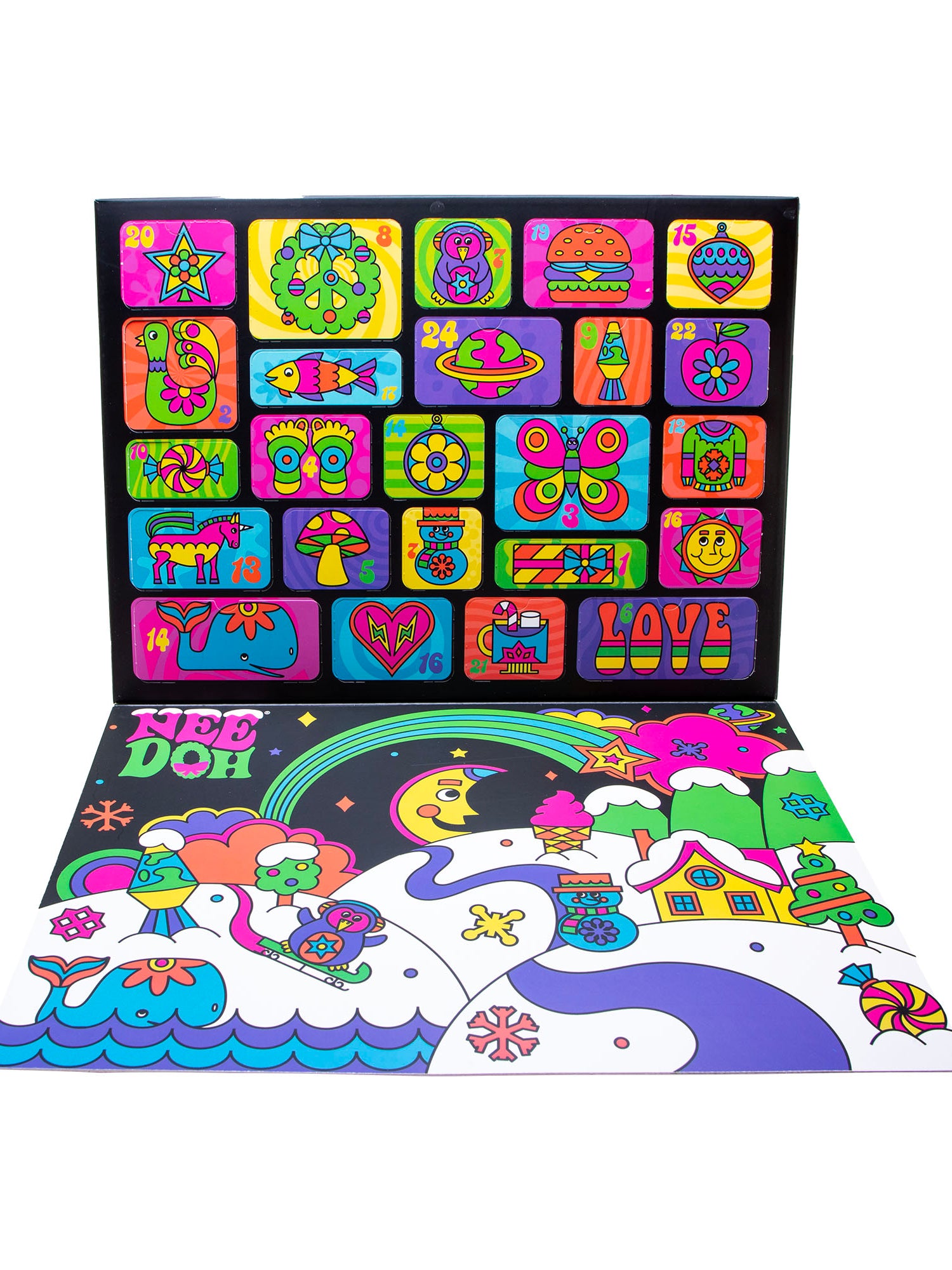 Celebrate the holidays with a daily dose of fun from the NeeDoh Advent Calendar! Open each door to uncover a bright and colorful mini NeeDoh toy, with squishies, new shapes, and groovy textures waiting every day. The 24 surprises inside, are a super fun way to keep the holiday spirit groovy!