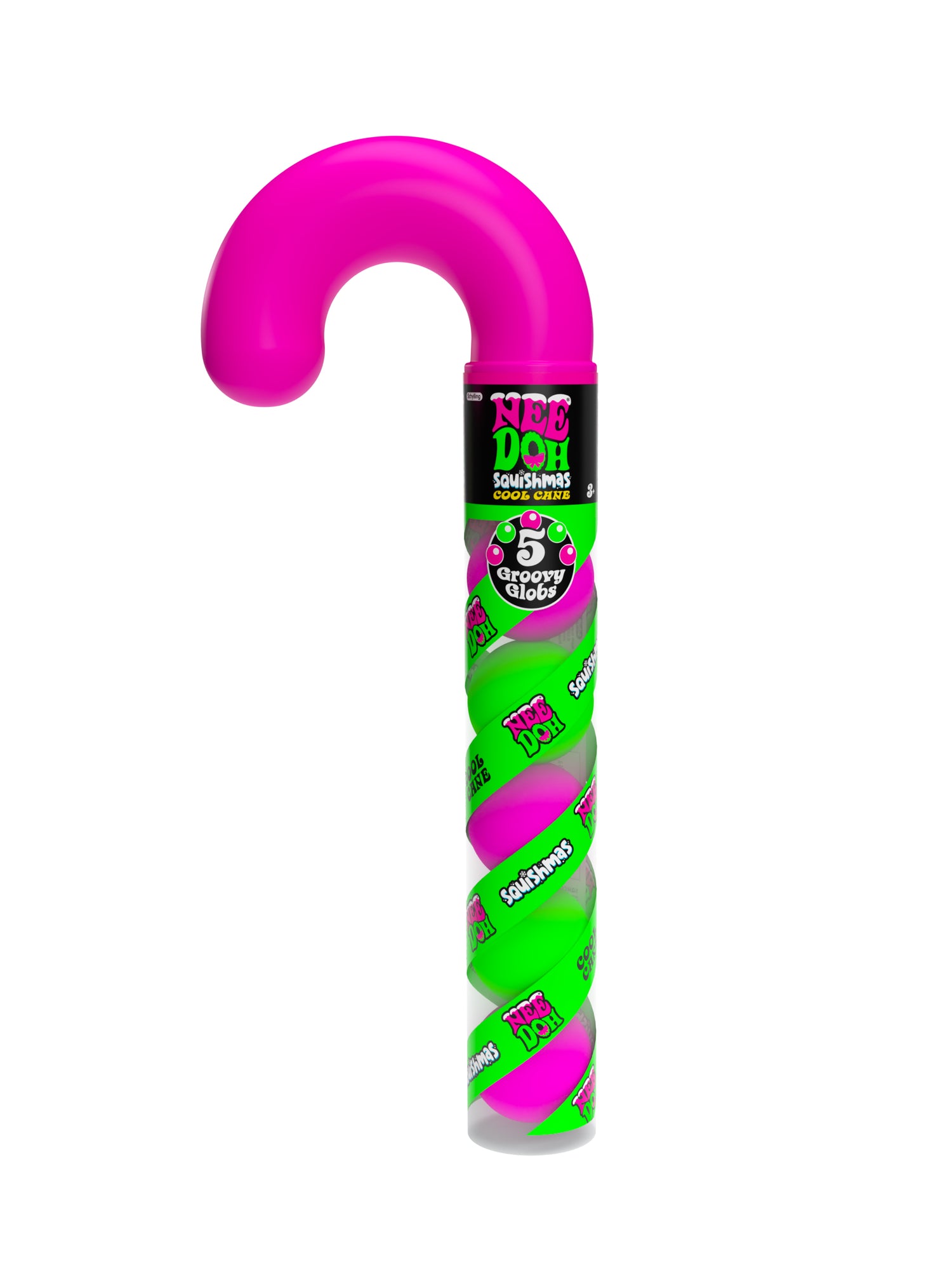 Sweeten the season with the NeeDoh Squishmas Cool Cane! It comes packed with five festive, fun, stretchy, and satisfying Teenie NeeDoh in both pink and green. This candy cane shaped package is the quickest way to stuff your stockings with groovy fidget cheer!