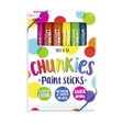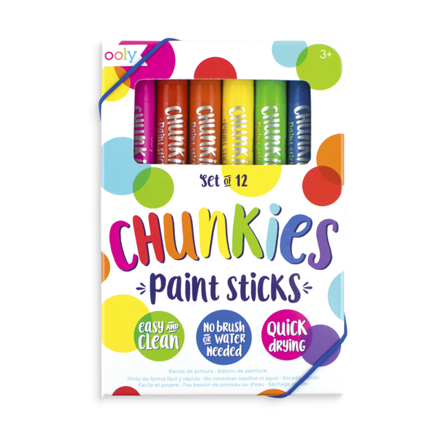 When you want to paint colorful pictures but want to leave the mess behind then it's time to reach for Chunkies Paint Sticks. Chunkies are super easy to use, clean and portable because they're like painting with a crayon. Just uncap, twist and start painting. Chunkies comes in a set of 12 different colored paint sticks each in a thick barreled casing so they're easy for little hands to hold. The paint colors are quick drying and won't smudge, but it's easy to mix colors to make even more colors. It's magic!
