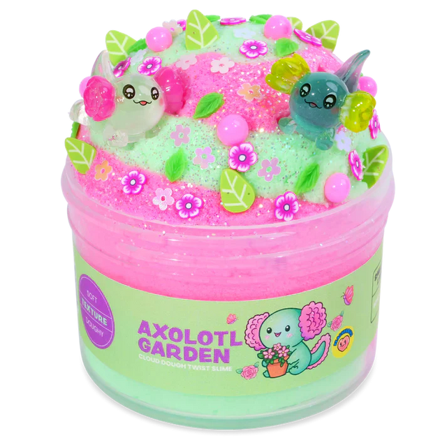 Enjoy a fantastic sensory experience with the Peachybbies Axolotl Garden Slime. This delightful 7 oz. cloud dough twist slime is infused with a soft, doughy texture and a rose fizz scent, perfect for unwinding and enjoying creative play.