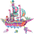 The Marvelous Mermaid Ship Set is assembled using colorful plastic building links and vibrant glossy paperboard panels. These pieces are secured by slotting them together, making for easy assembly and storage. Product designed in California.