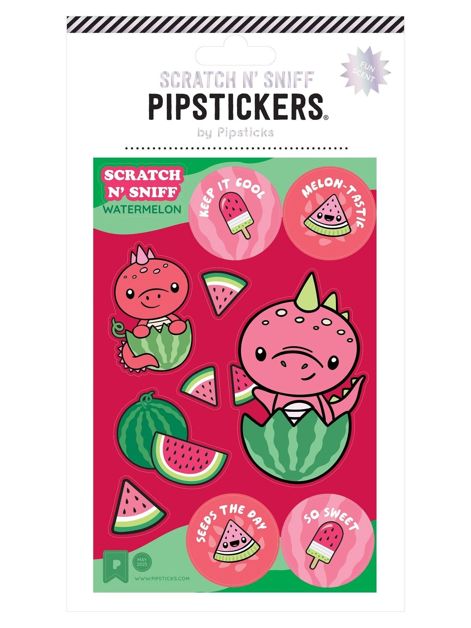 Includes one 4" x 6" sheet of Dino-sweet Delights Scratch 'n Sniff Watermelon scented PipStickers.