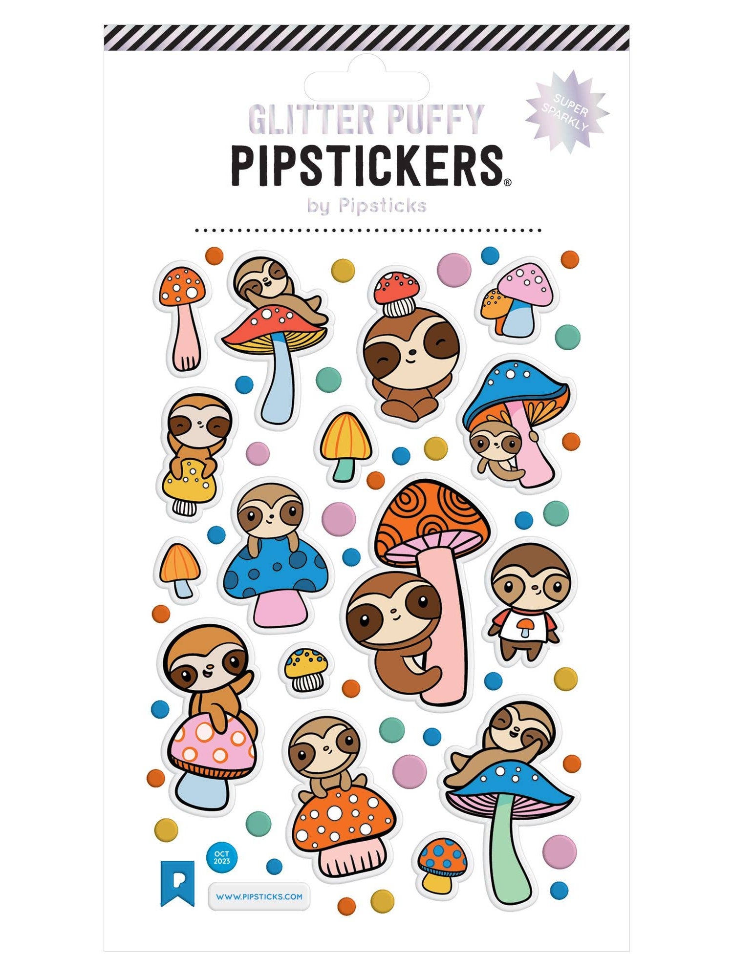 Includes one Puffy Slow Mush Love PipSticker sheet with glitter accents.