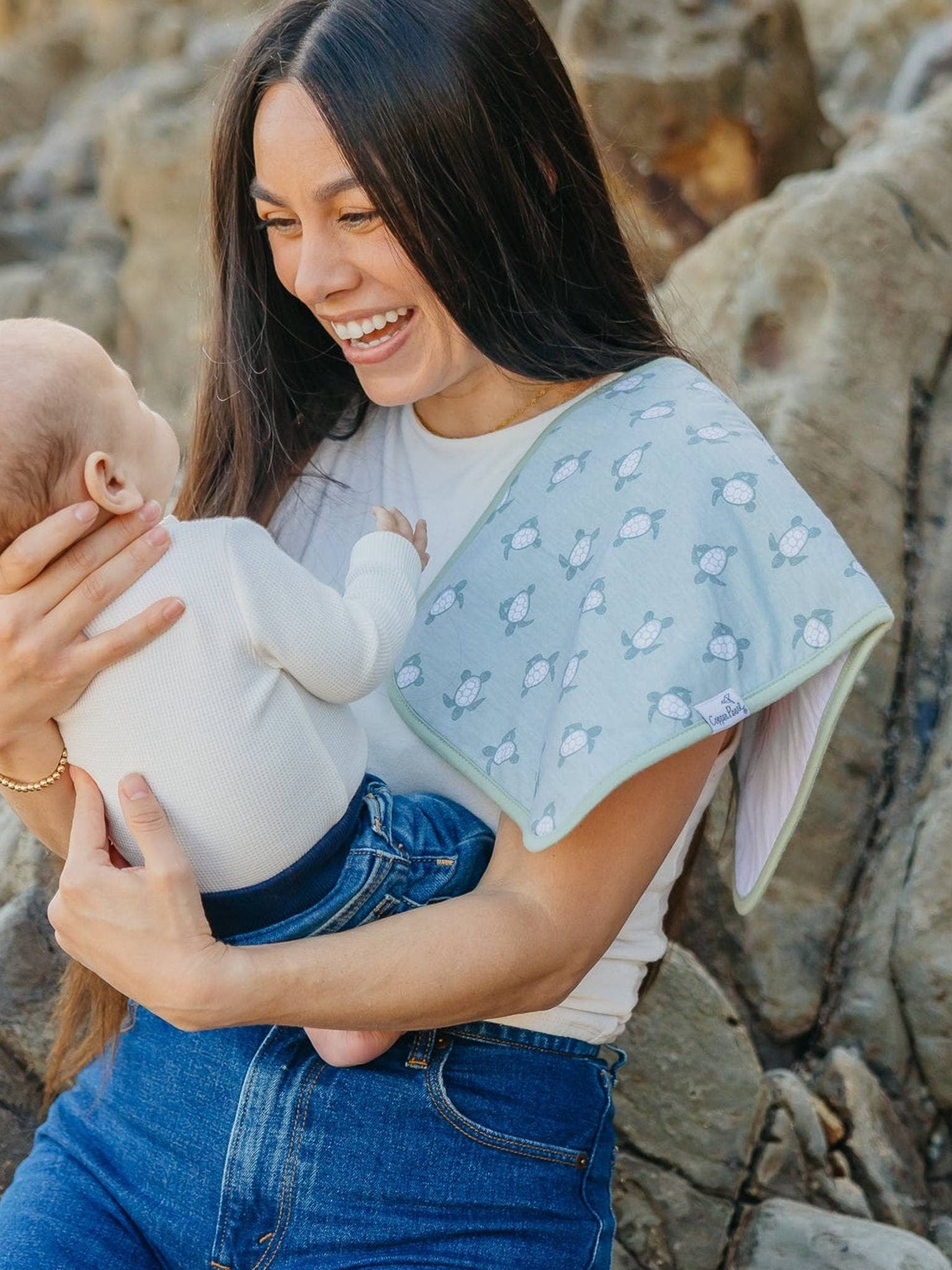 - Our burp cloths come in a generous 21x10 inch size, providing greater shoulder coverage (and less outfit changes) for Mom and Dad.