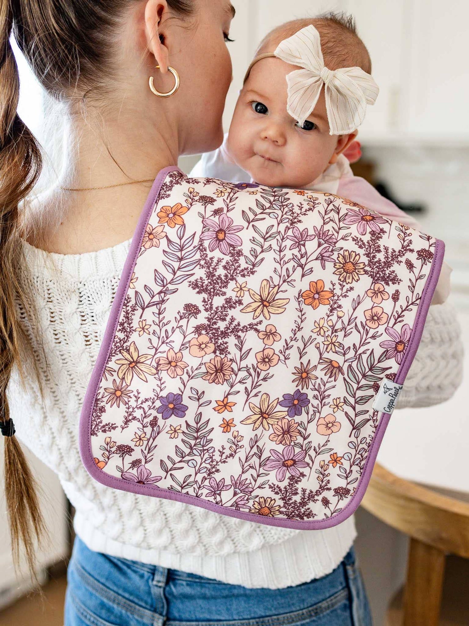 - At Copper Pearl we pride ourselves on making high quality products that always look great on babies, moms, or in your nursery. Our burp cloths are simple, modern, and sure to elevate any baby's style.