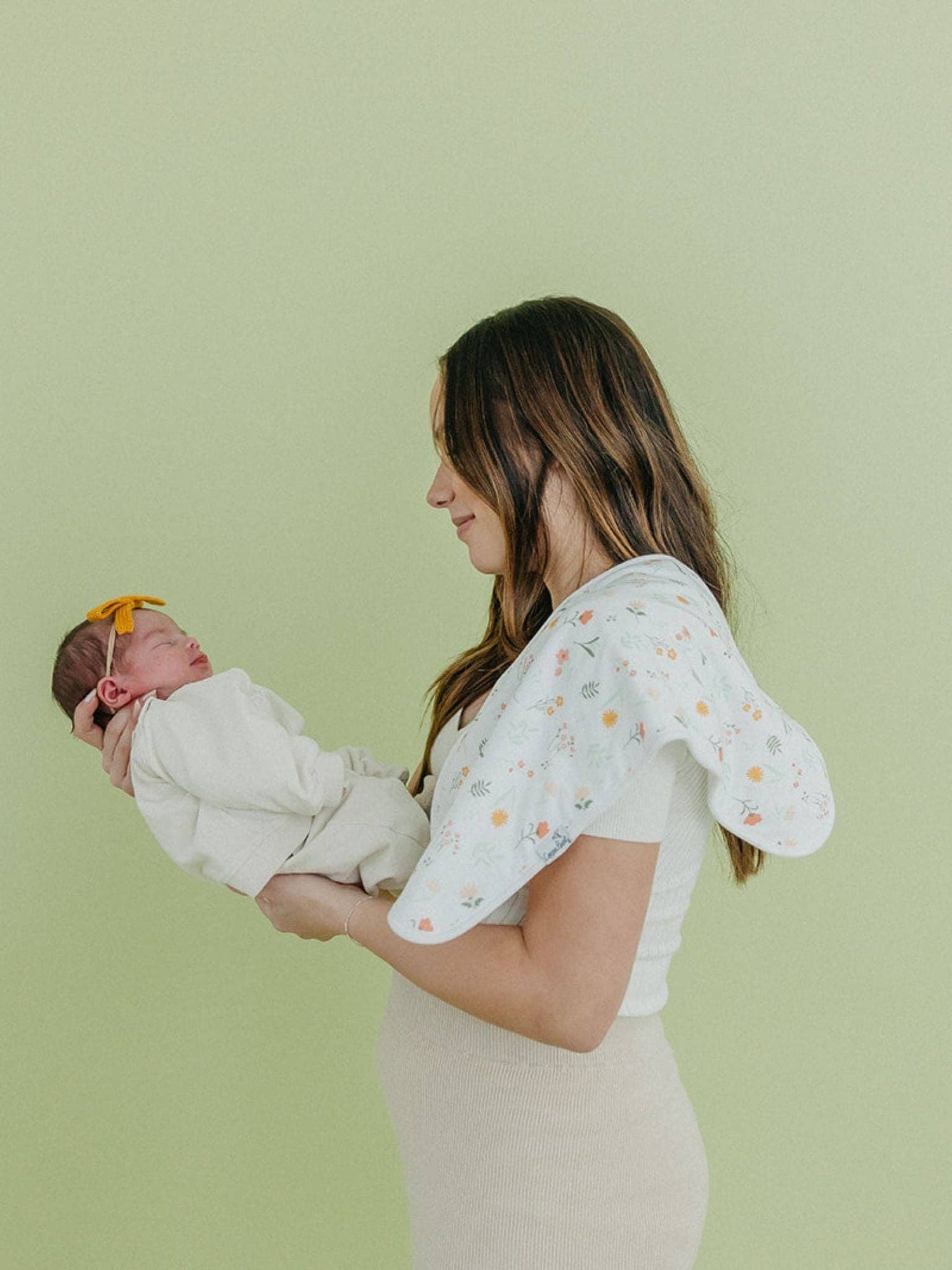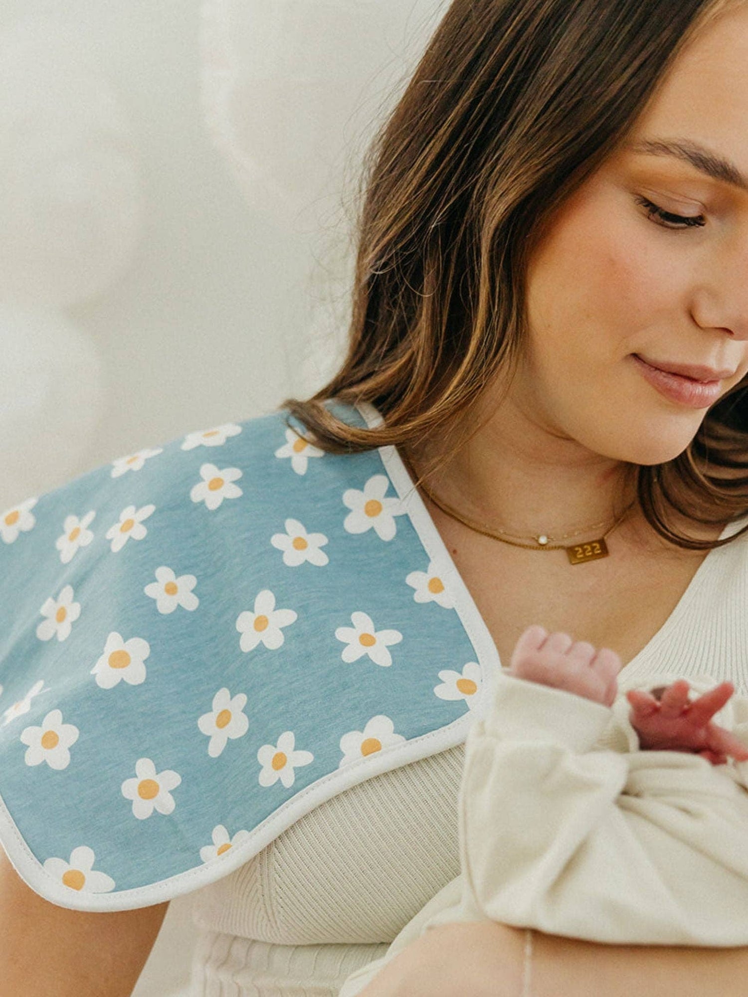 - Our burp cloths are designed with baby’s comfort in mind. That’s why we created them with 100% ultra-soft cotton layers on the front (patterned) and back (plain white). You can feel confident that baby will feel cozy against your shoulder while burping.