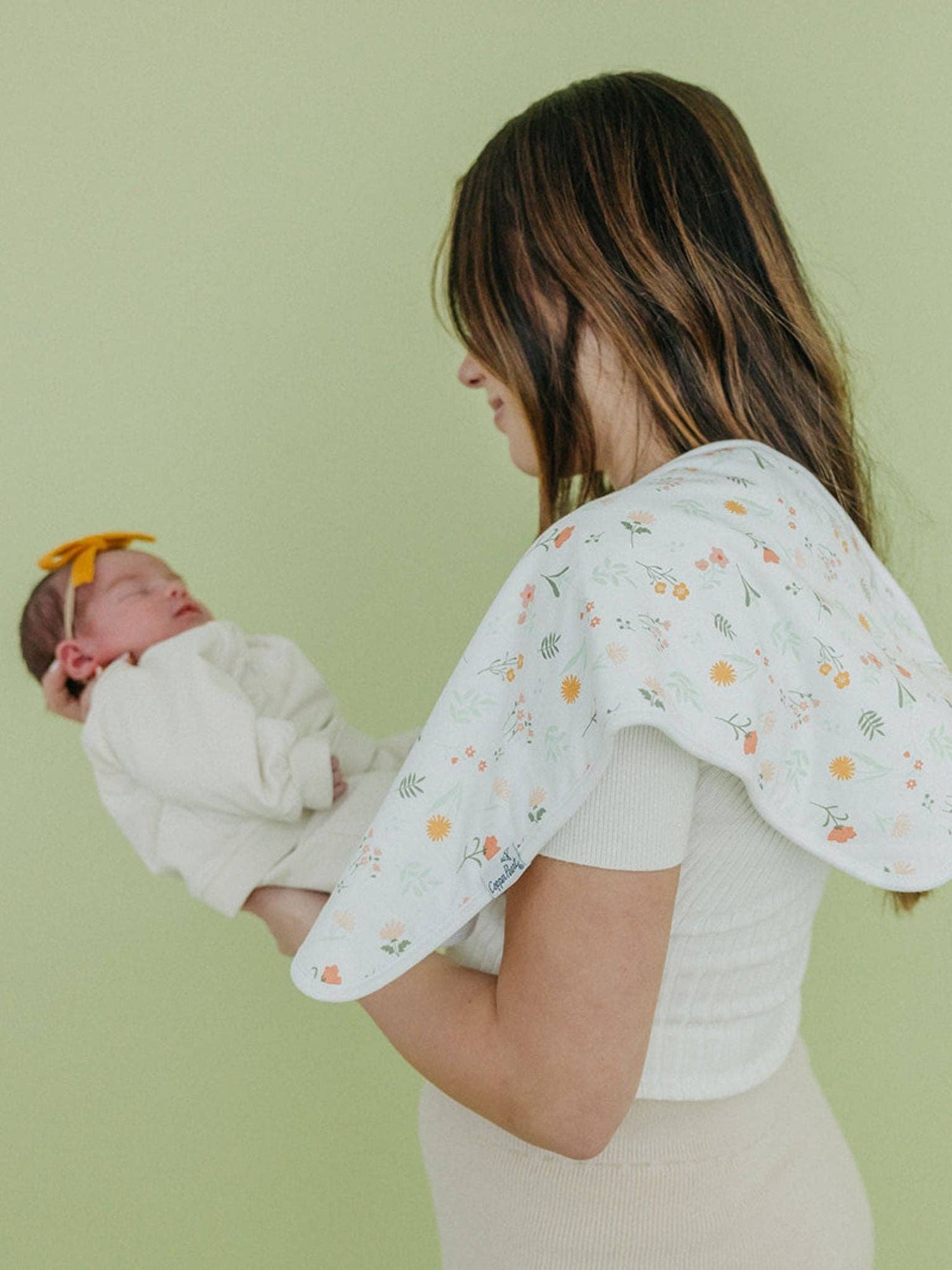 - Our burp cloths come in a generous 21x10 inch size, providing greater shoulder coverage (and less outfit changes) for Mom and Dad.