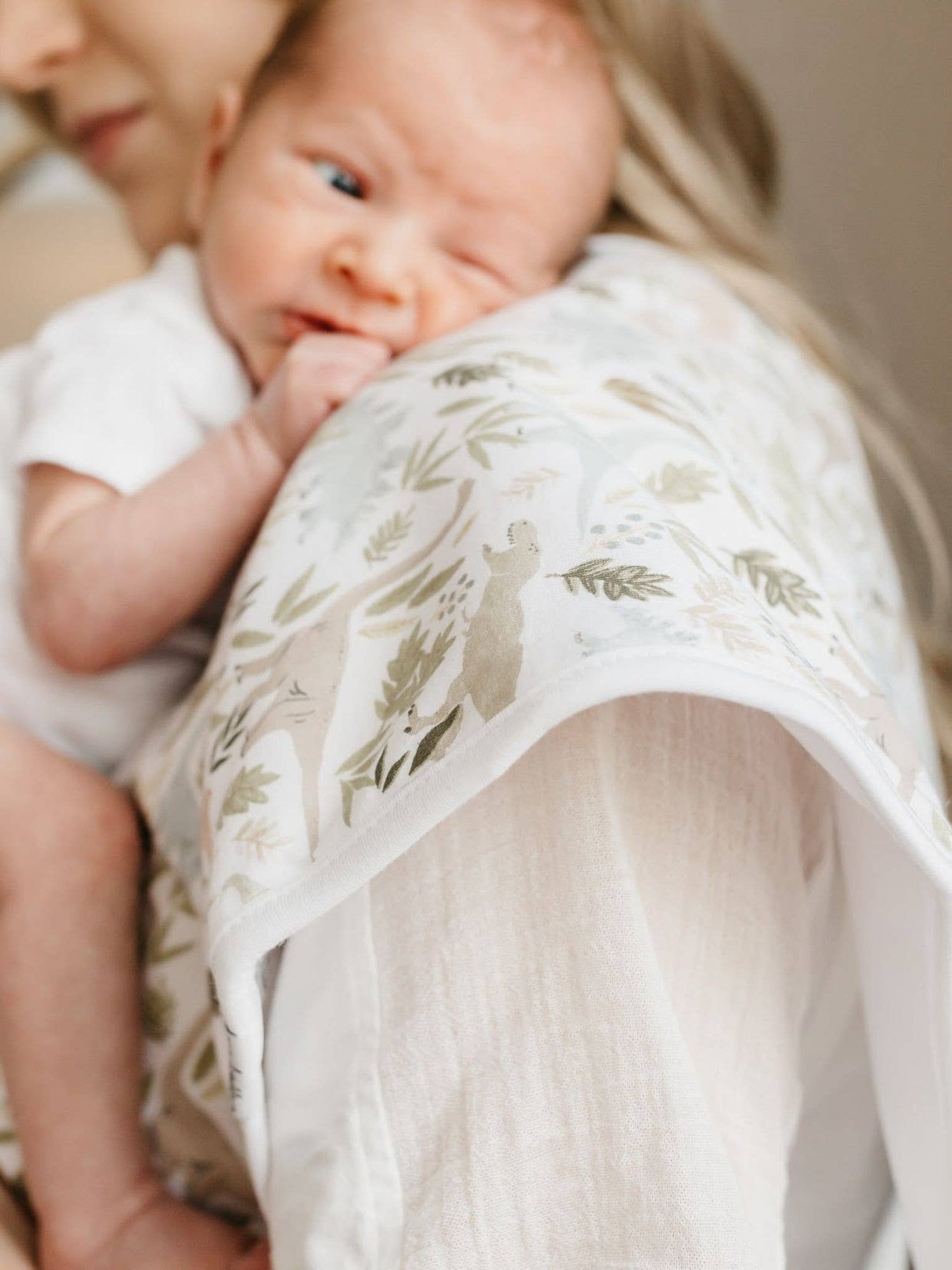 - Our burp cloths are designed with baby’s comfort in mind. That’s why we created them with 100% ultra-soft cotton layers on the front (patterned) and back (plain white). You can feel confident that baby will feel cozy against your shoulder while burping.