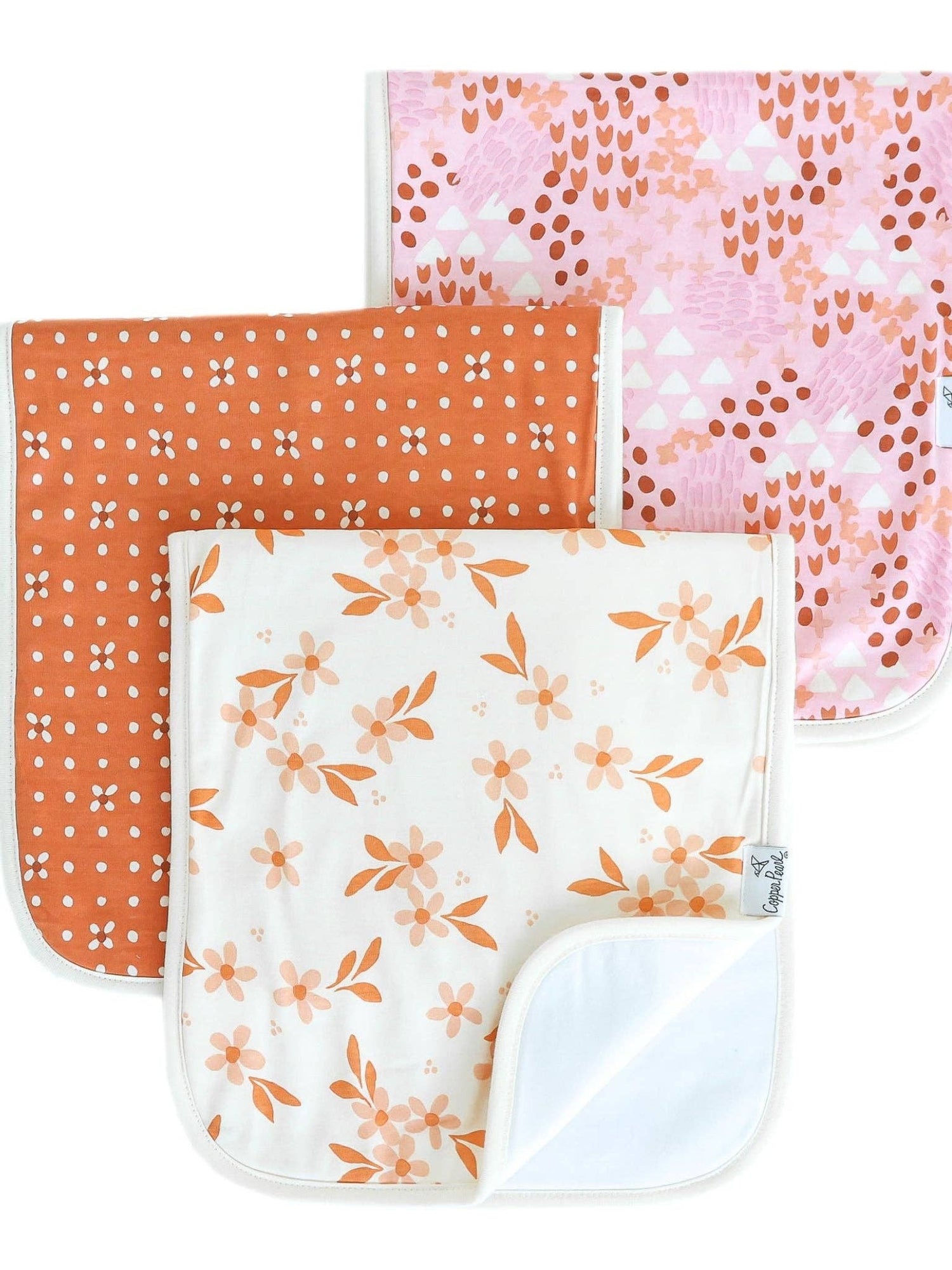 - At Copper Pearl we pride ourselves on making high quality products that always look great on babies, moms, or in your nursery. Our burp cloths are simple, modern, and sure to elevate any baby's style.