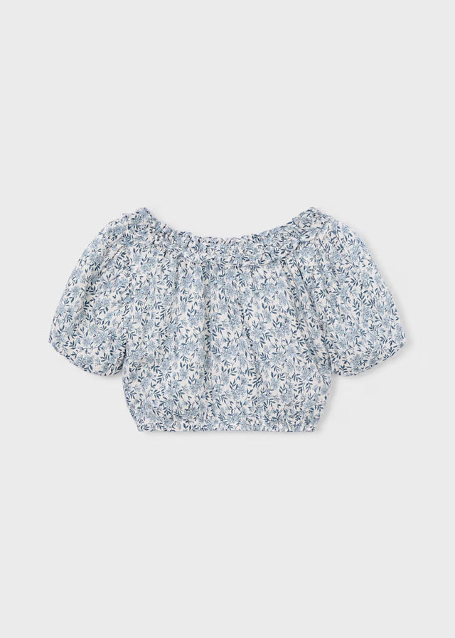 Puff Sleeve Top - Blue Floral