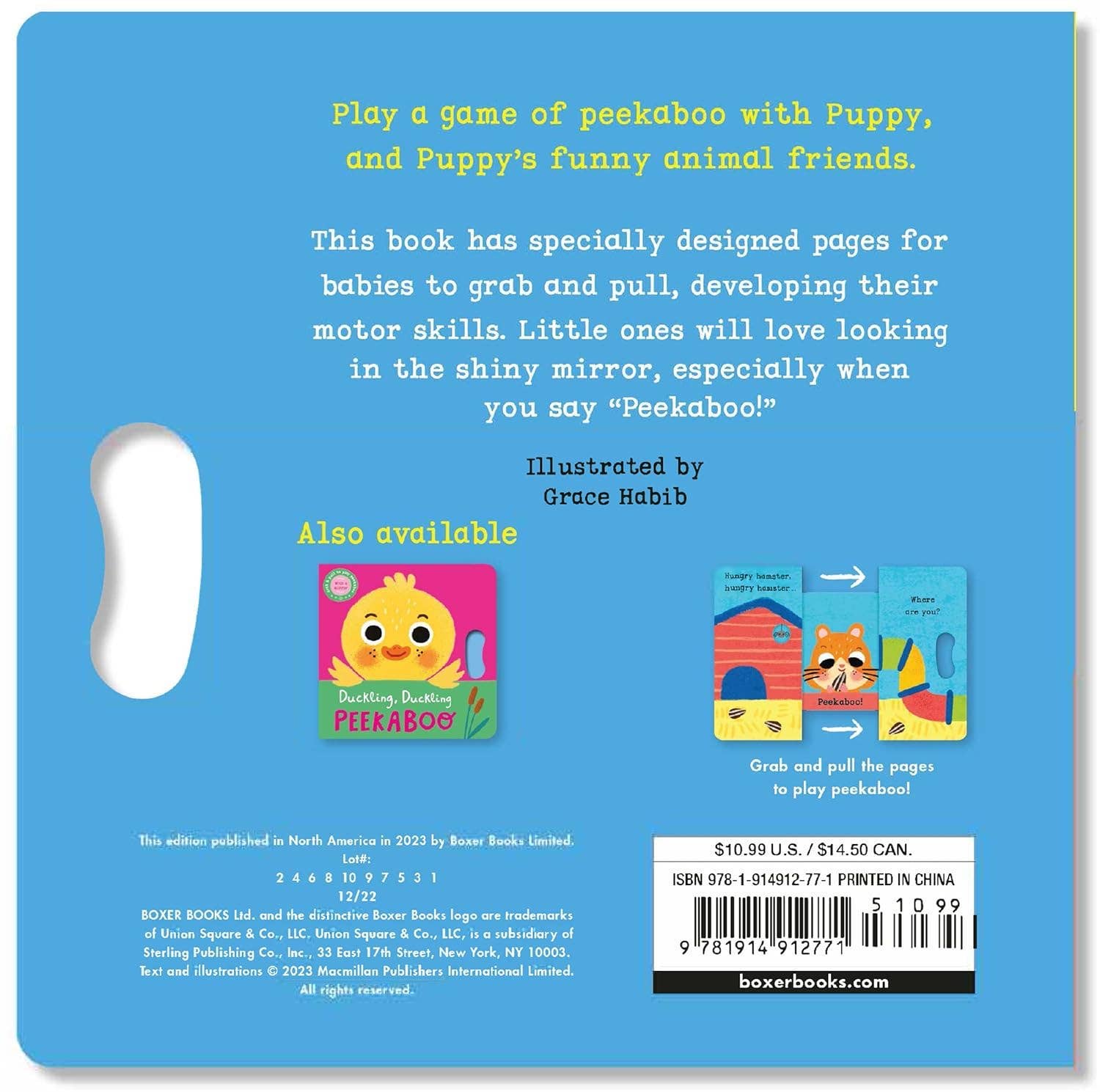 Playing peekaboo is proven to be the most effective way to make a baby laugh. In Puppy, Puppy PEEKABOO!, little ones' favorite game is brought to life with easy grab-and-pull mechanisms and a shiny mirror. Open the pages to reveal adorable puppies! With stunning illustrations by Grace Habib, punchy pantone colors to engage babies' senses, and teach them about colors. This is a perfect gift for babies ages 6 months and older. Children's Board Book; 7 1/16 x 7 1/16 inches; 8 pages.