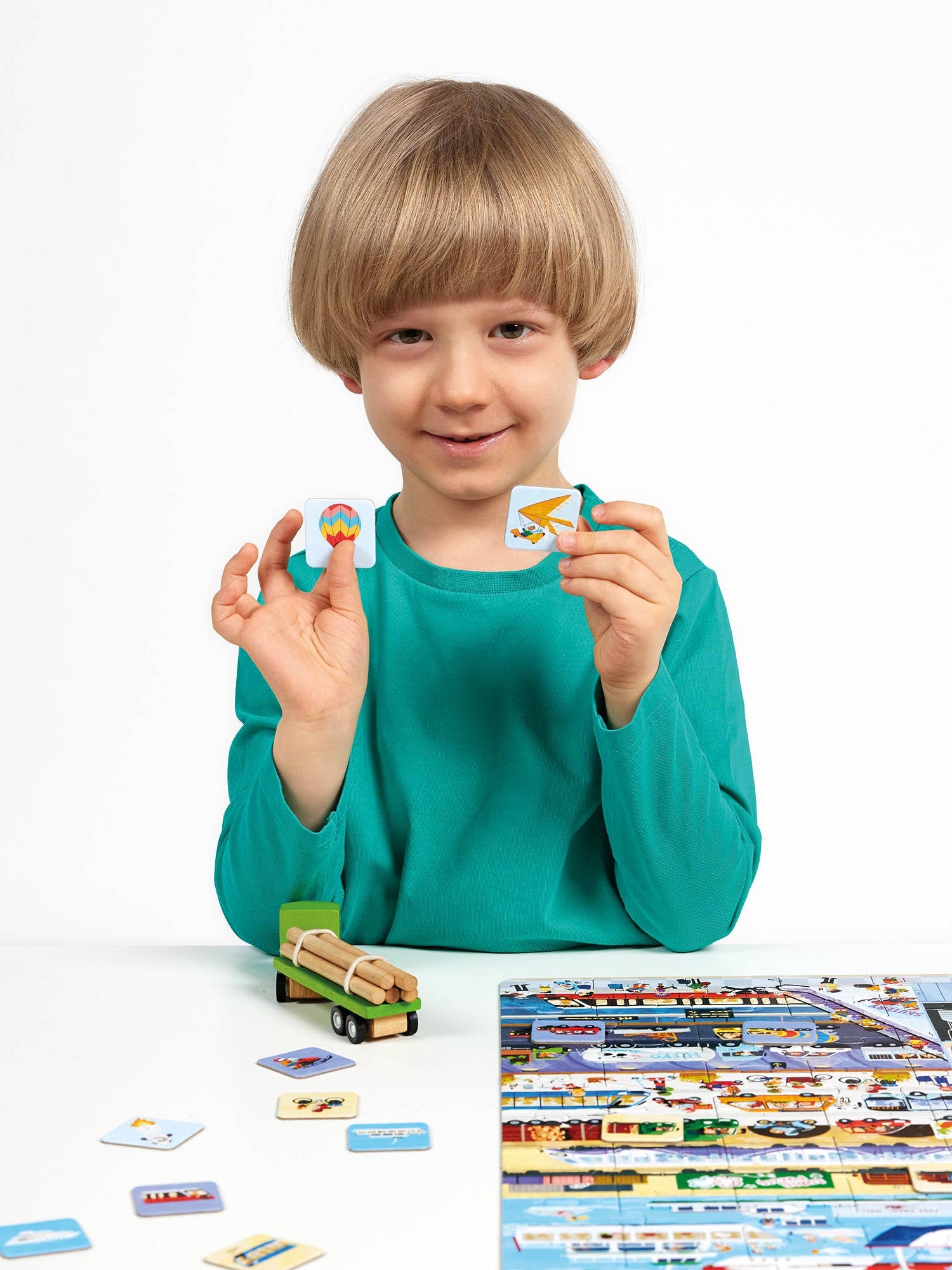 This large, colorful puzzle with 60 pieces features various vehicles that transport passengers and goods. Do you know them all? Learn fun facts about transportation on the included educational poster, and search for 32 specific items on the puzzle’s illustration using the add-on tiles for even more creative play. This set makes an excellent educational gift for curious preschoolers, especially those who love vehicles.