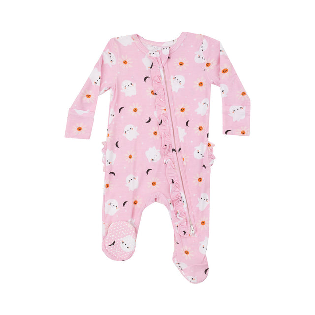 Ruffle Zip Footie - Spooky Ghost - 3-6m is backordered and will ship as soon as it is back in stock.