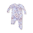 Ruffle Zip Footie - Woodrose Peri - NB is backordered and will ship as soon as it is back in stock.