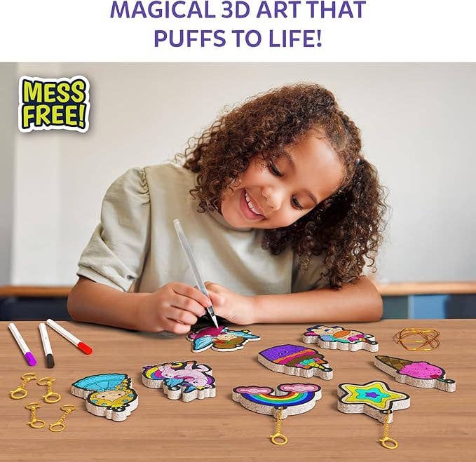 Bring fairy tale magic to life with Aqua Puffs Princesses & Unicorns, where enchanting designs transform from flat to fabulous with just water! This innovative 3D craft kit lets children color beautiful princess and unicorn scenes, then watch in wonder as their creations magically puff up into touchable, dimensional art. Featuring whimsical designs that appeal to fantasy lovers, each Aqua Puff becomes a personalized accessory, room decoration, or treasured keepsake. The complete kit includes everything needed for multiple crafting sessions, making it perfect for solo play, sleepovers, or creative parties. As a 2025 Parents Best Toys Award winner, this mess-free activity combines artistic expression with hands-on science exploration. Kids ages 4 to 10 will love the instant gratification of seeing their colorwork transform before their eyes. No complicated steps, no adult supervision required - just simple, magical fun that builds confidence and creativity. Each finished puff can be attached to backpacks, used