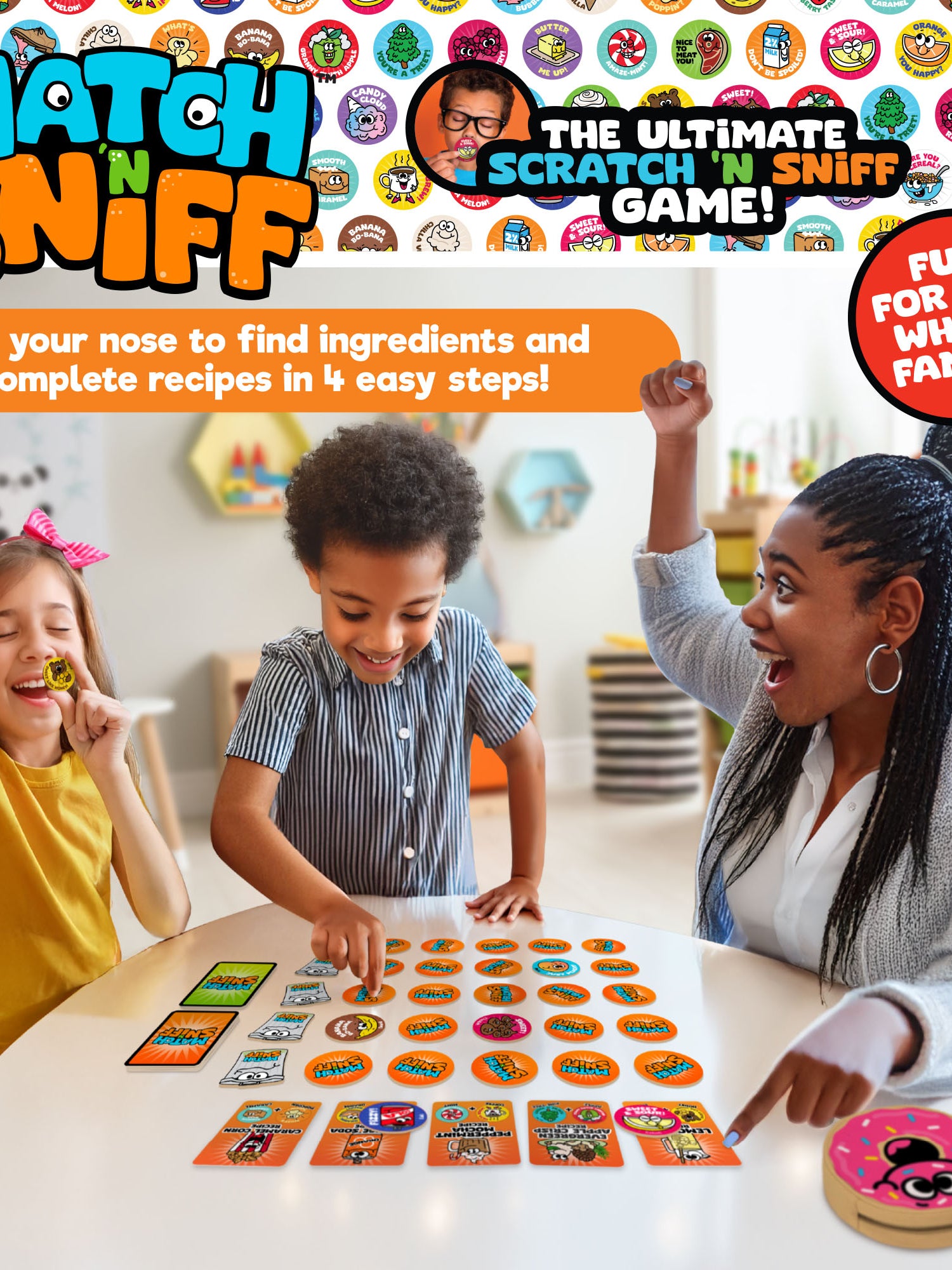 • Scratch and smell tokens, trying to identify scents and complete 3 Recipe Cards to win!