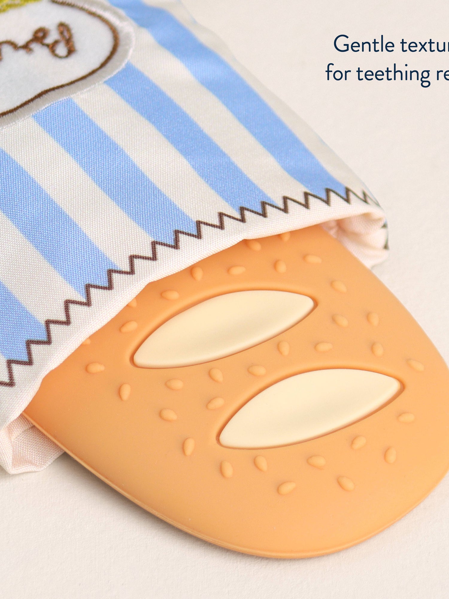 - Sensory textures to soothe sore gums