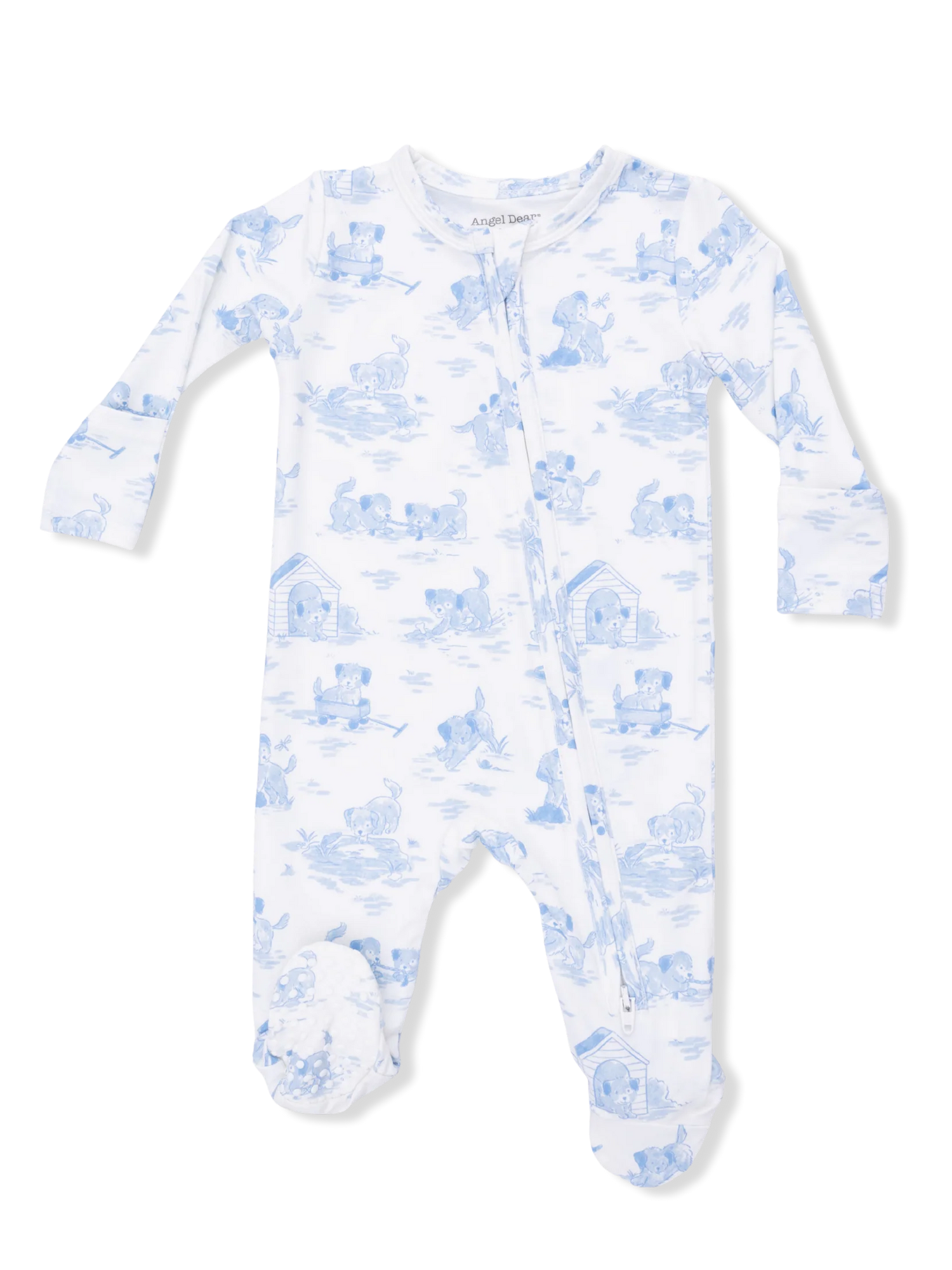 Zip Footie - Puppy Toile Blue