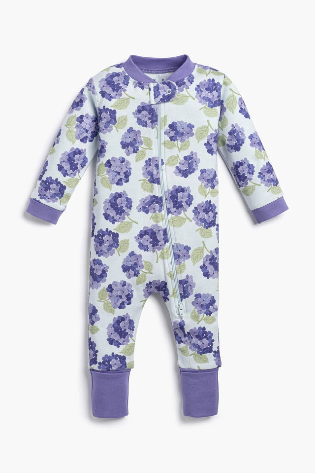 Zip Romper - Hydrangeas - 0-3m is backordered and will ship as soon as it is back in stock.